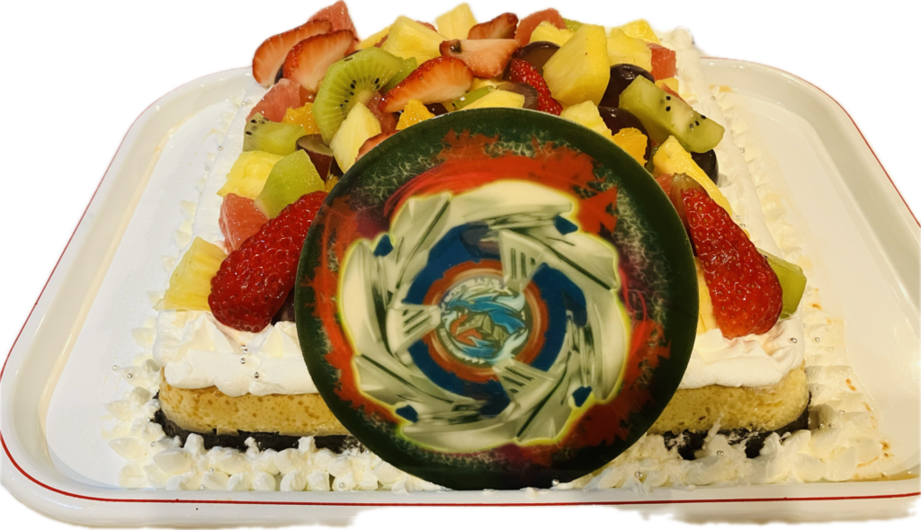 そして最近のケーキは「ベイブレードXのプリンケーキ」。